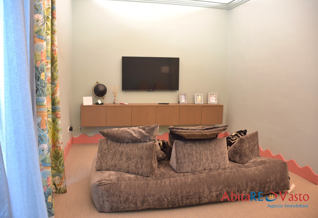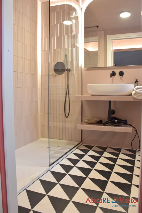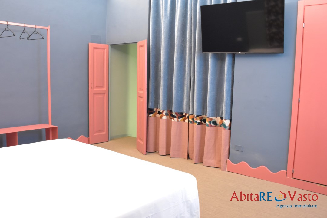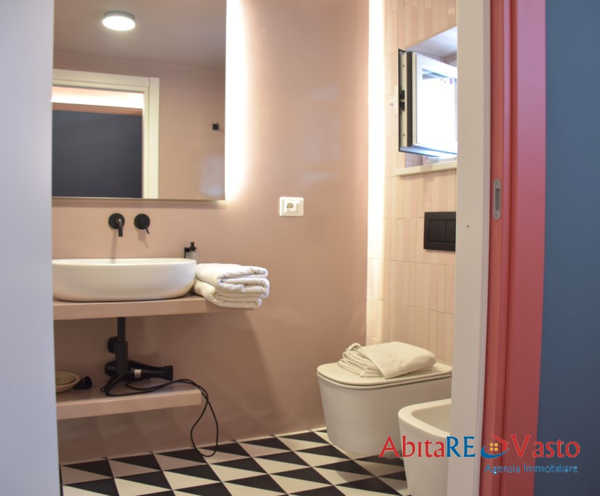 Vasto - Via Canaccio. In pieno centro, a pochi passi da Piazza Rossetti, proponiamo in locazione transitoria un appartamento di recente ristrutturazione integrale, arredato con mobili nuovi e curato nei dettagli, disposto su due livelli con ingresso indipendente al piano terra. Al 1° piano si sviluppa la luminosa zona giorno con cucina a vista, separata dal soggiorno da una parete parziale, e un comodo balconcino. Una scala interna, ben illuminata, conduce al piano superiore dove troviamo una spaziosa camera matrimoniale con bagno en-suite, un pratico ripostiglio e un secondo balconcino.