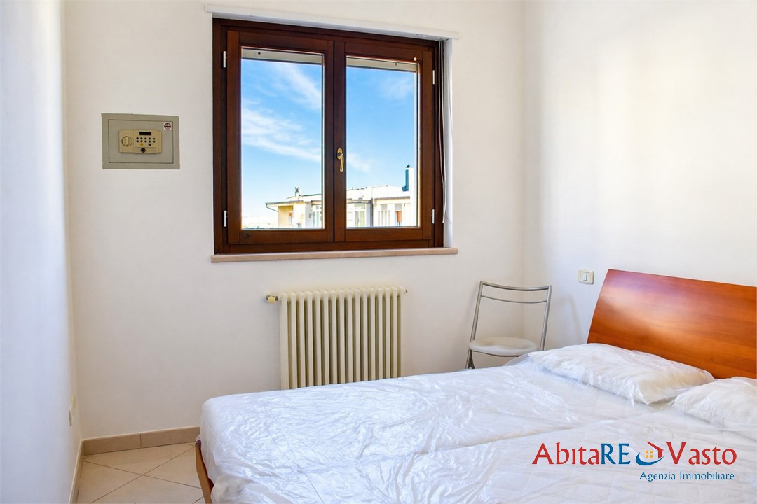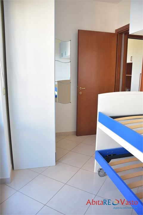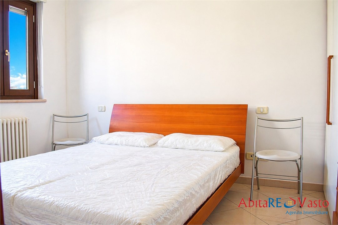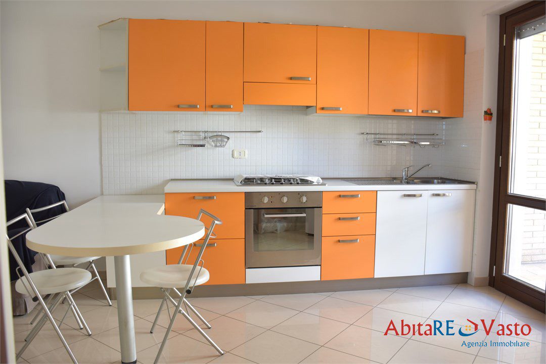 Vasto - Via Casetta. All'interno di una palazzina di recente costruzione, proponiamo in locazione un appartamento in ottime condizioni, completamente arredato con gusto. L'immobile, posto al secondo piano e servito da ascensore, si compone di un luminoso soggiorno con angolo cottura, camera matrimoniale, cameretta, bagno con box doccia e due comodi terrazzini con vista mare. La casa offre ottime finiture, impianto di riscaldamento autonomo, posto auto esterno riservato e box privato di 19 mq al piano seminterrato. Soluzione ideale per chi desidera vivere in un contesto tranquillo, moderno e ben collegato, senza rinunciare al comfort e alla vicinanza ai principali servizi. Contratto di locazione agevolato 4+2 anni; richieste referenze e documentazione reddituale comprovata.